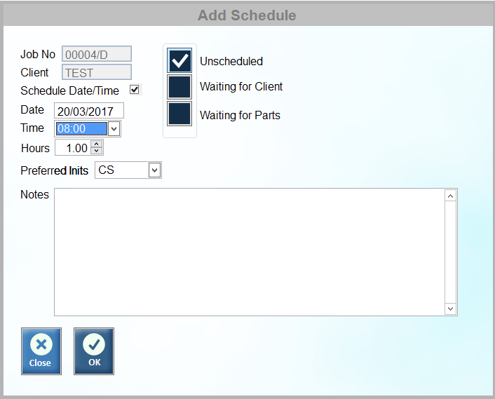 We are going to add a schedule date, time and a preferred site worker to Job No 00004/D.