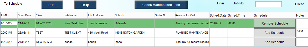 In this example we will use job 00106/D, it already has a Schedule date & Time.
