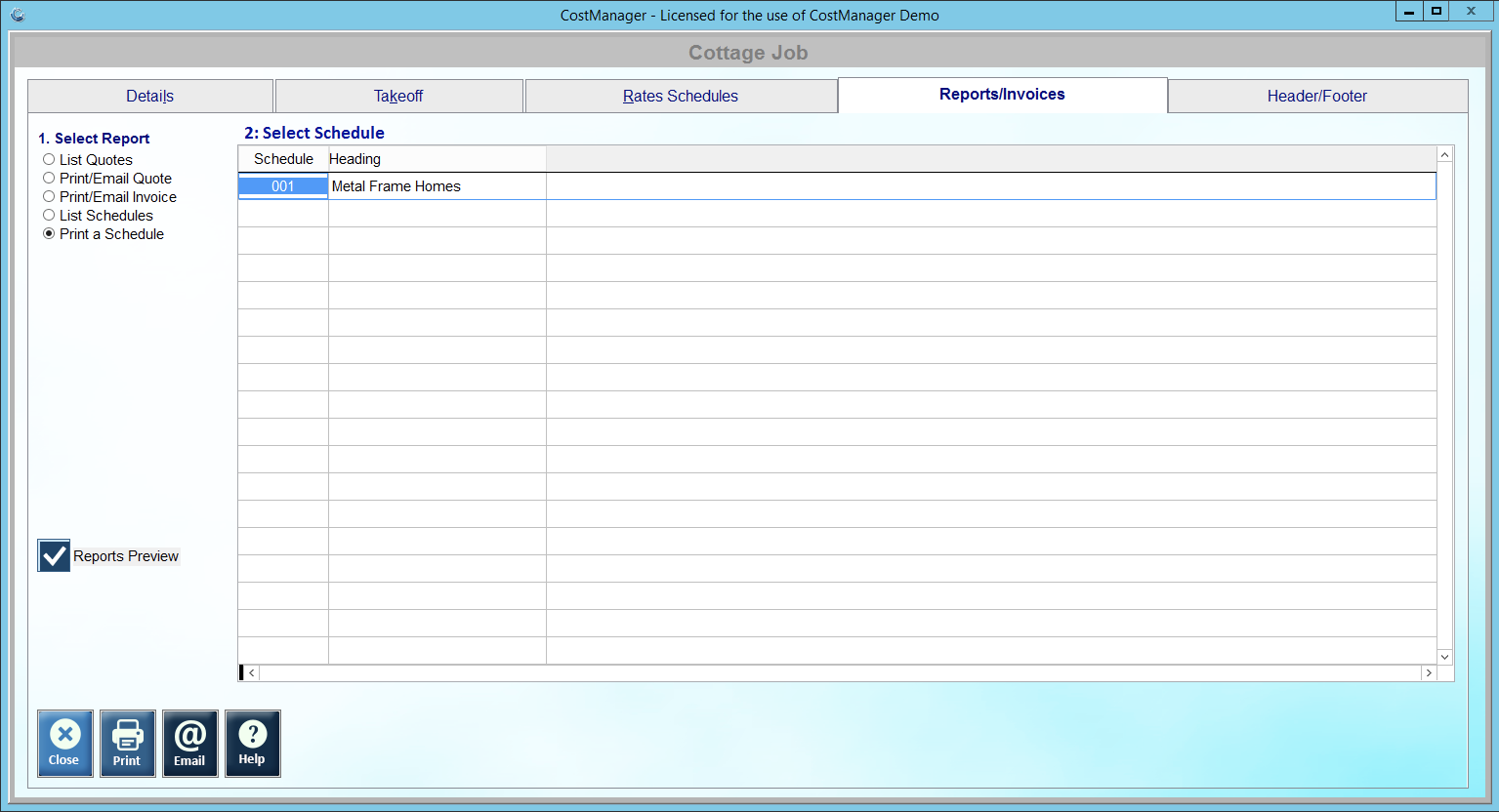 5: Print a Schedule - (1) Select Print a Schedule, Reports preview ticked, Click on Print (to view or print), Press ESC if you do not want to print.